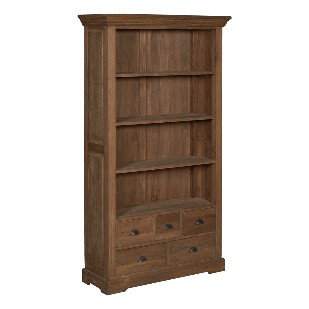 Das Bücherregal aus der Serie Borgia ist handgefertigt aus 100% recyceltem Teakholz. Das sorgfältig ausgewählte alte Holz schafft ein schönes natürliches und ländliches Aussehen. Dieses Möbelstück hat 5 Schubladen, genug Platz für alle Arten von Dingen. Kombinieren Sie diesen Artikel mit den anderen Möbeln aus unserer Borgia-Kollektion! Diese Serie besteht aus Tischen, Schränken, Sideboards und TV-Schränken.