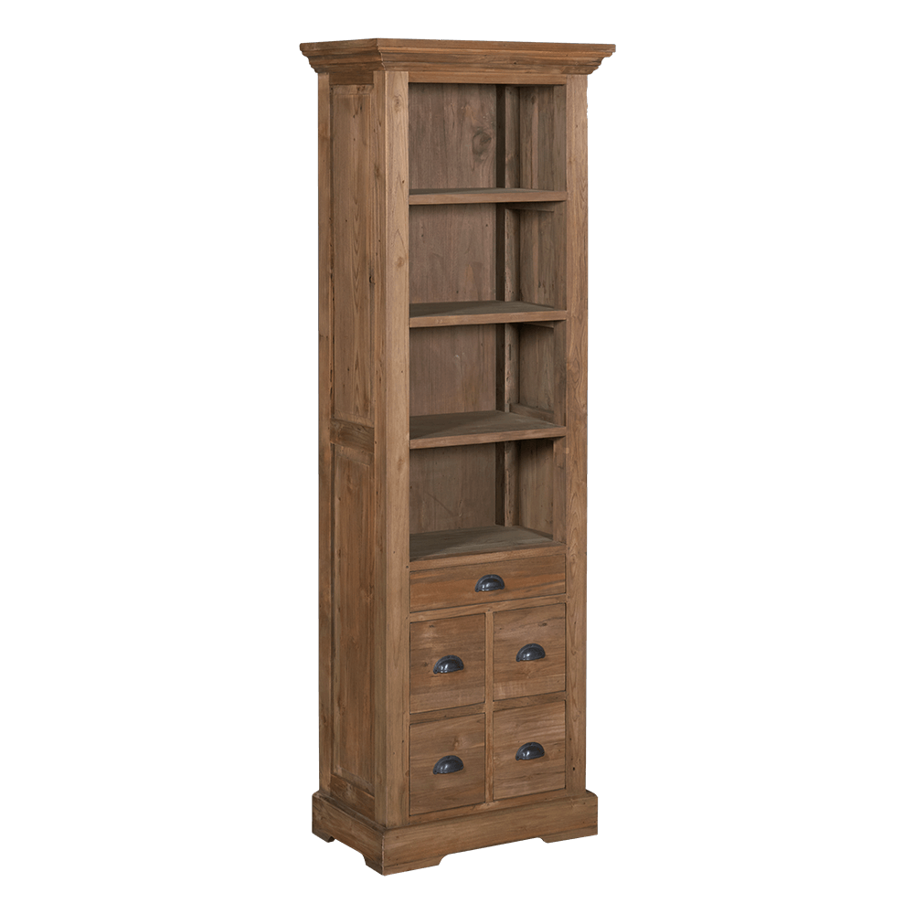 Das Bücherregal aus der Serie Borgia ist handgefertigt aus 100% recyceltem Teakholz. Das sorgfältig ausgewählte alte Holz schafft ein schönes natürliches und ländliches Aussehen. Dieses Möbelstück hat 5 Schubladen, genug Platz für alle Arten von Dingen. Kombinieren Sie diesen Artikel mit den anderen Möbeln aus unserer Borgia-Kollektion! Diese Serie besteht aus Tischen, Schränken, Sideboards und TV-Schränken.