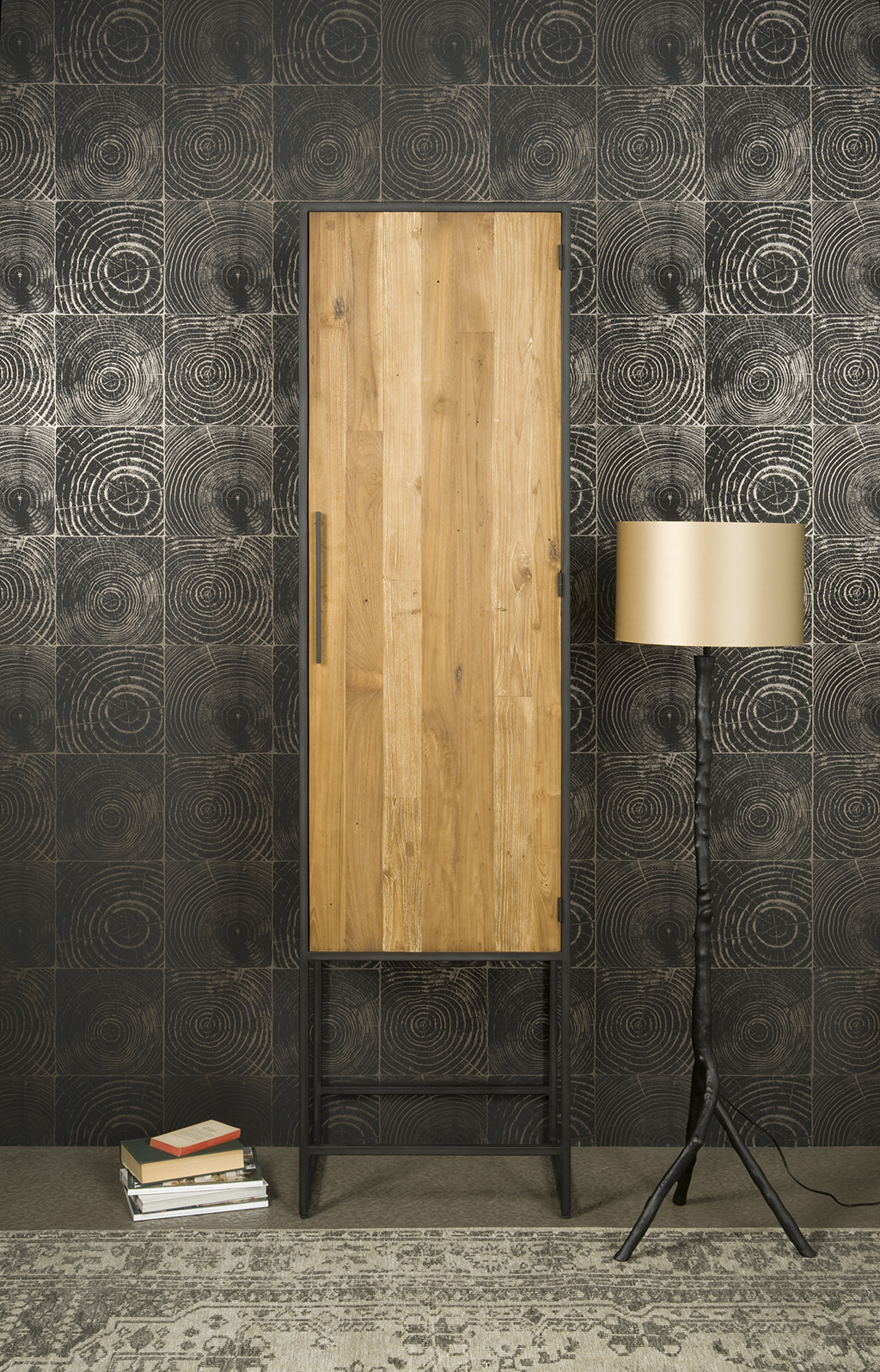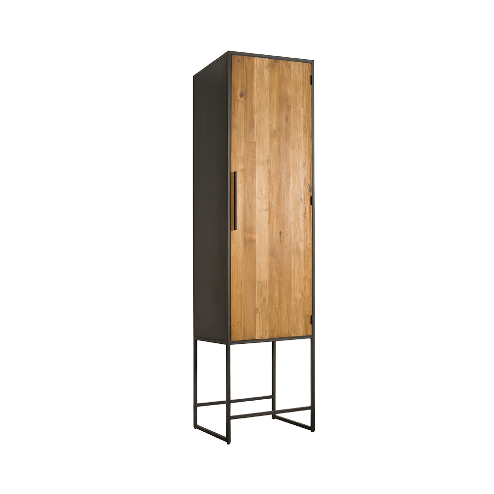 Der Kabinettschrank Felino ist ein wunderschöner Aufbewahrungsschrank aus der Fidenza-Serie. Der Schrank besteht aus recyceltem Teakholz und Metall. Der Schrank ist mit einem schwarzen Holzrahmen eingerahmt. Die Basis besteht aus Stahl und ist mit einer schwarzen Pulverbeschichtung versehen. Der Schrank verdankt sein industrielles Erscheinungsbild der Kombination von Holz und Stahl. Teakholz ist eine der qualitativ hochwertigsten Holzarten. Der Kabinettschrank Fidenza ist 60 cm breit, 45 cm tief und 220 cm hoch. Er ist ein echter Hingucker in Ihrem Interieur. Der Schrank hat eine einzige Tür mit einem Metallgriff, der wie der Rahmen mit einer schwarzen Pulverbeschichtung versehen ist.
