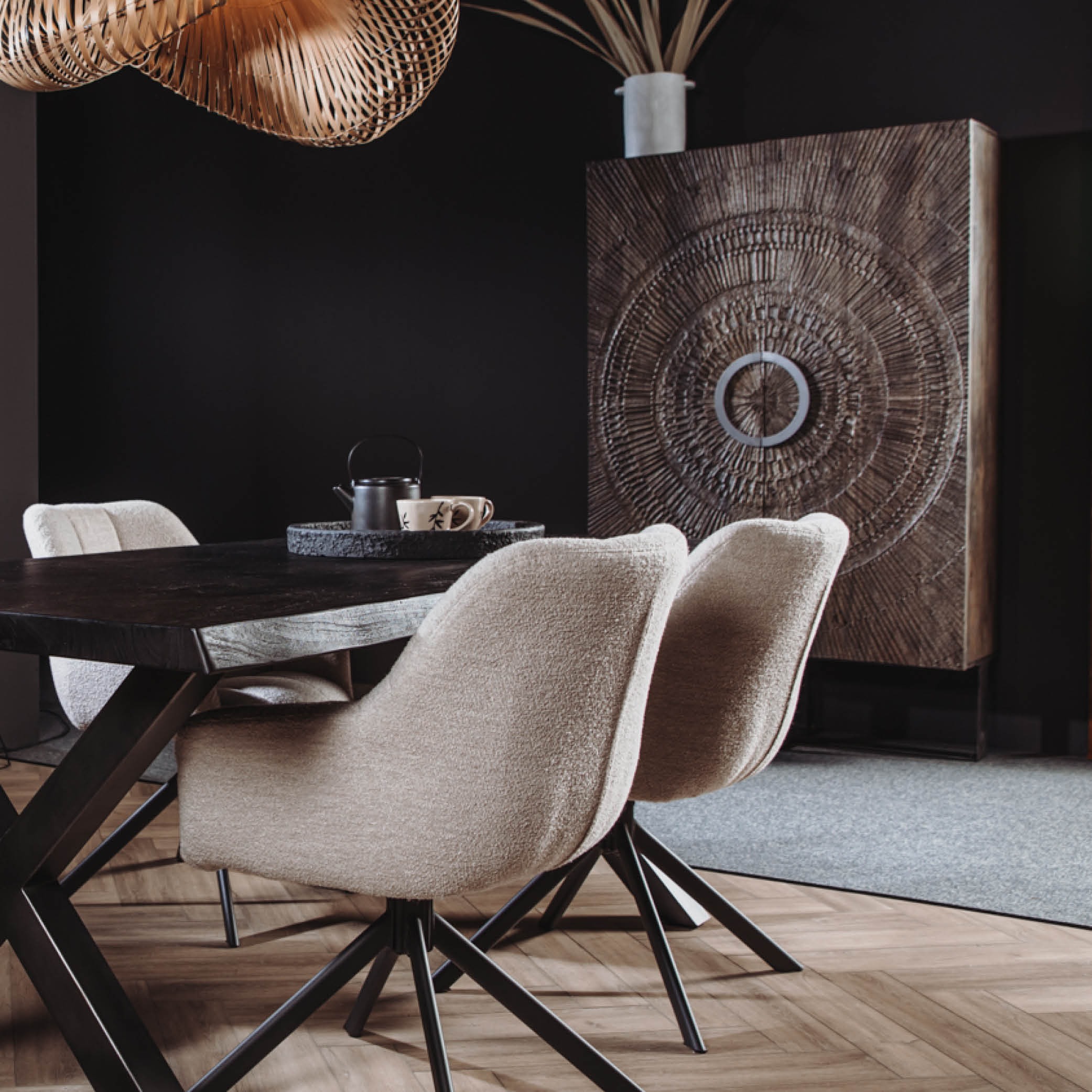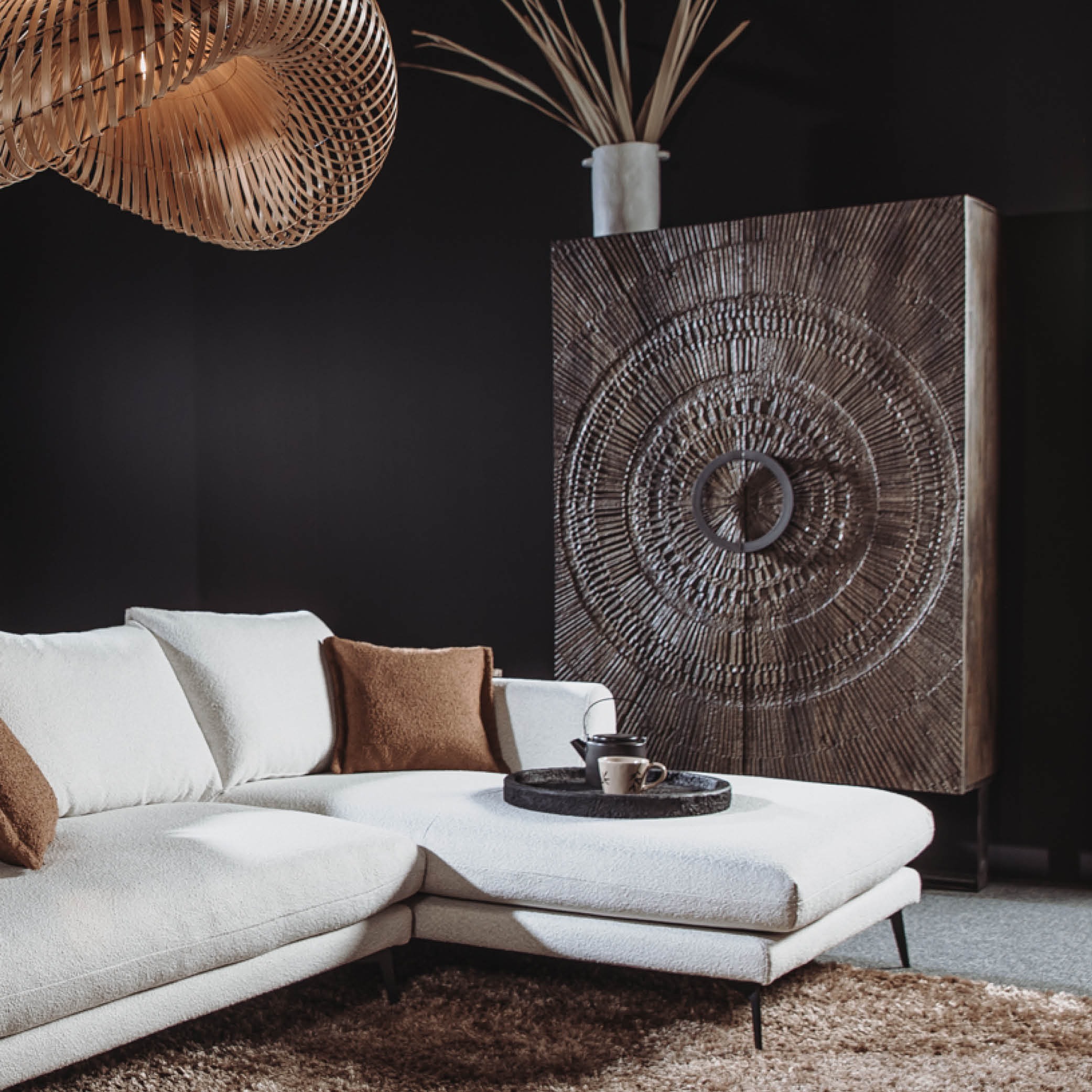 Der Aufbewahrungsschrank Parma ist ein beeindruckender Schrank mit einer Breite von 120 cm, gefertigt aus Mangoholz und Metall. Der Schrank hat einen einzigartigen, ländlichen Retro-Look und ist perfekt, um in Ihrem Interieur ein Statement zu setzen. Das robuste Design und das besondere Muster auf den Türen machen diesen Schrank zu einem echten Hingucker.