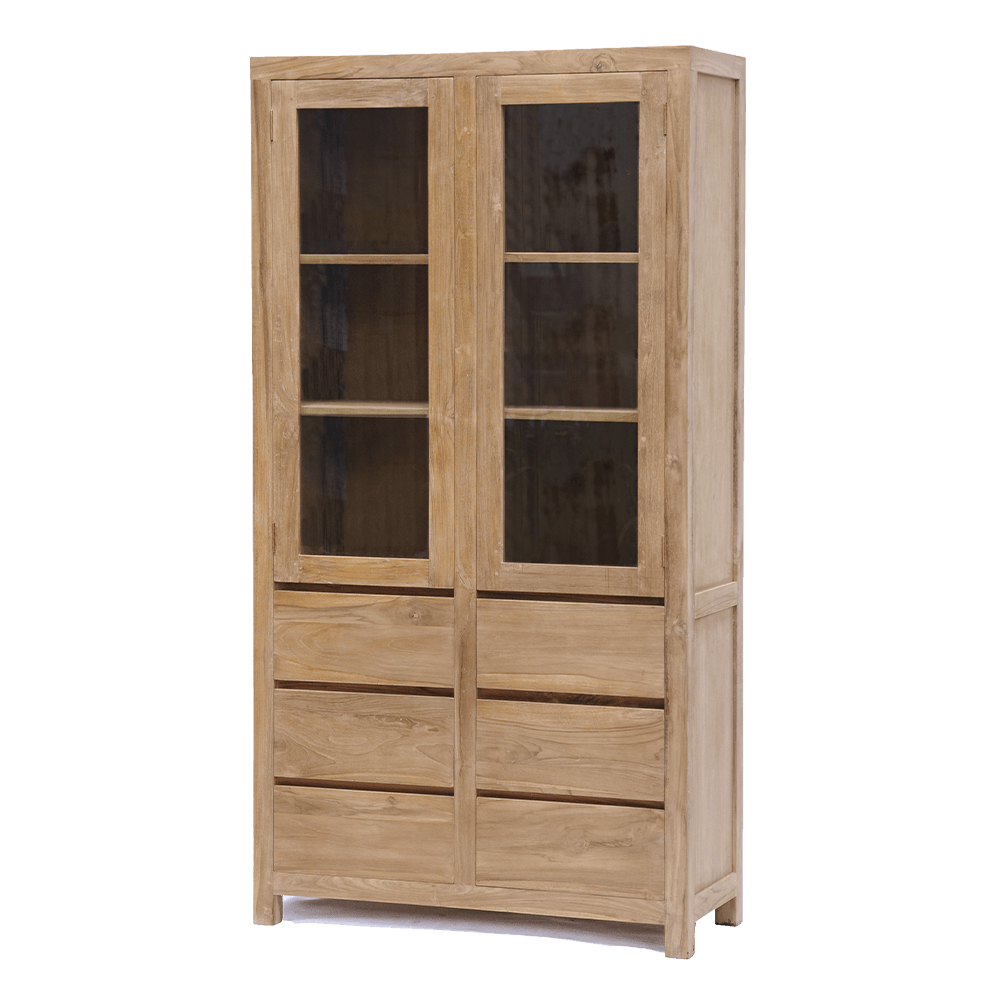 Der Vitrinenschrank Civo ist ein wunderschöner Schrank aus massivem Teakholz . Der Schrank kann in verschiedenen Einrichtungsstilen kombiniert werden. Vitrinentschrank Civo verdankt sein zeitgemäßes Design seiner hellen Holzfarbe.